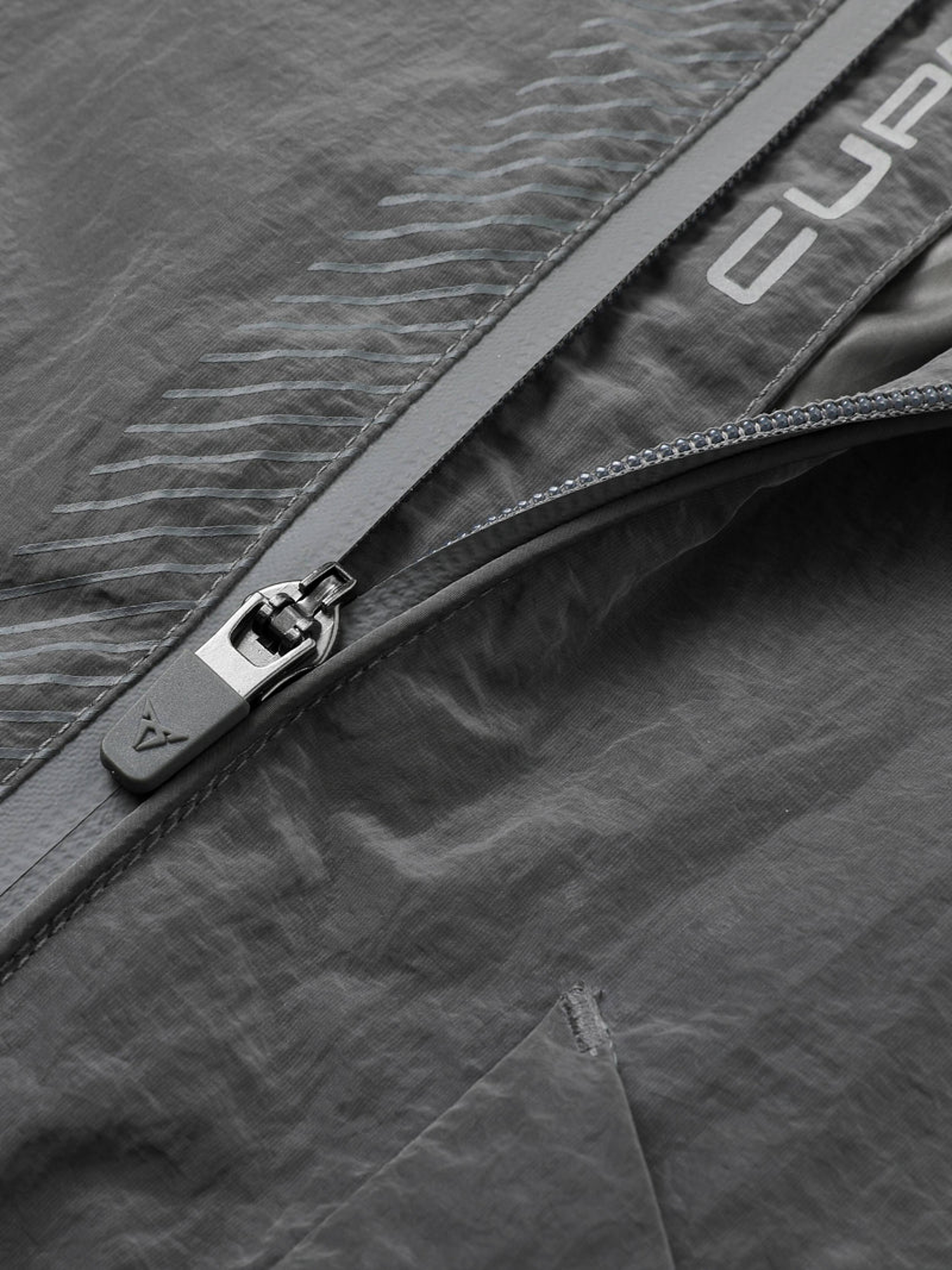 Veste de sport coupe boxy, coupe-relax en tissu technique, coupe-vent et respirante, avec fermeture éclair frontale et grandes poches. Manches ballon pour liberté de mouvement et style. Comprend manches raglan avec coutures diagonales, doublure laser-perforée paramétrique, poches zippées cachées et logos CUPRA réfléchissants. Fabriquée à 100 % en nylon (extérieur et doublure). Idéale pour usage quotidien, trajets urbains, entraînement léger ou après la salle de sport. Lavage en machine à 30°C ; ne pas passer au sèche-linge.